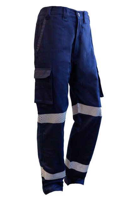 Industrial 100% cotton ripstop trousers with segmented reflective tape, multi pocket design